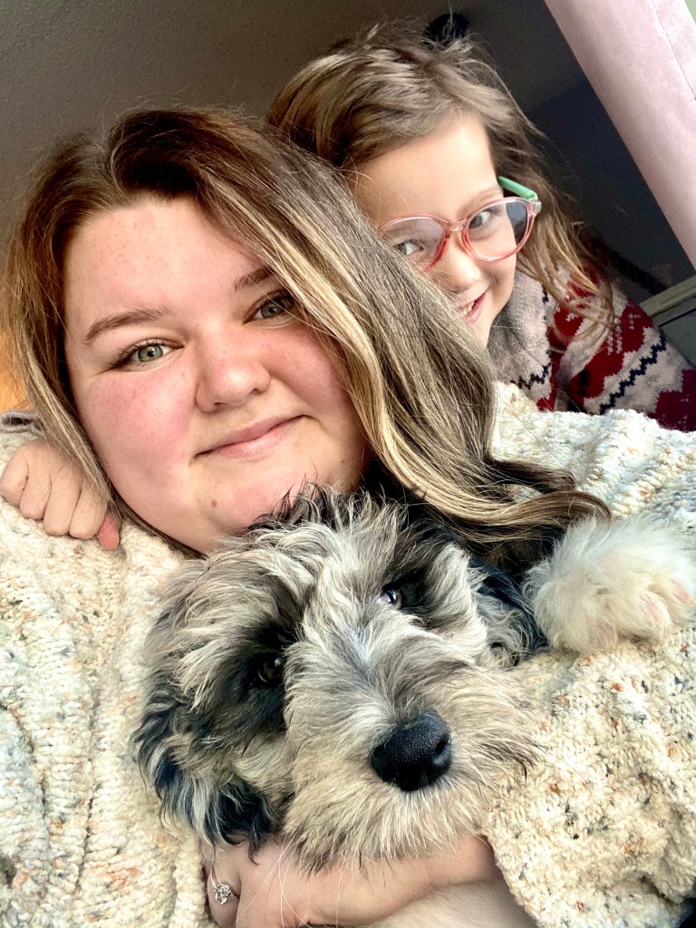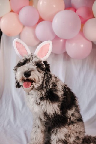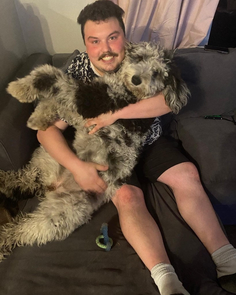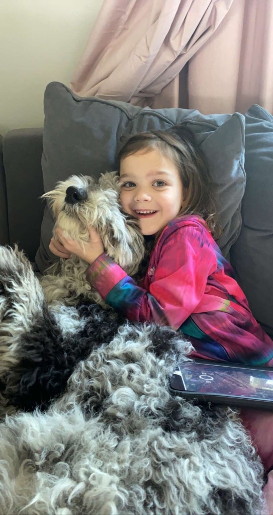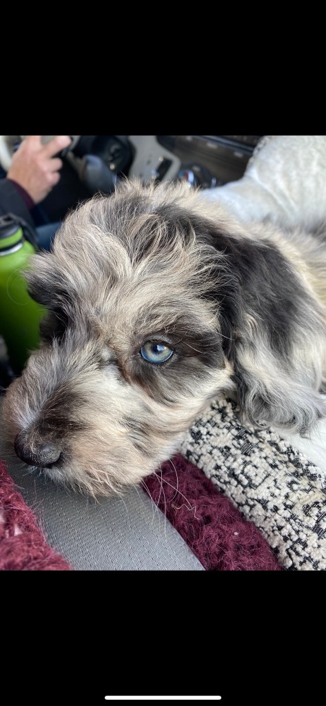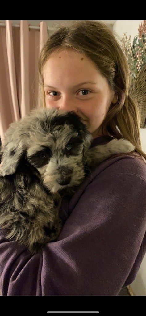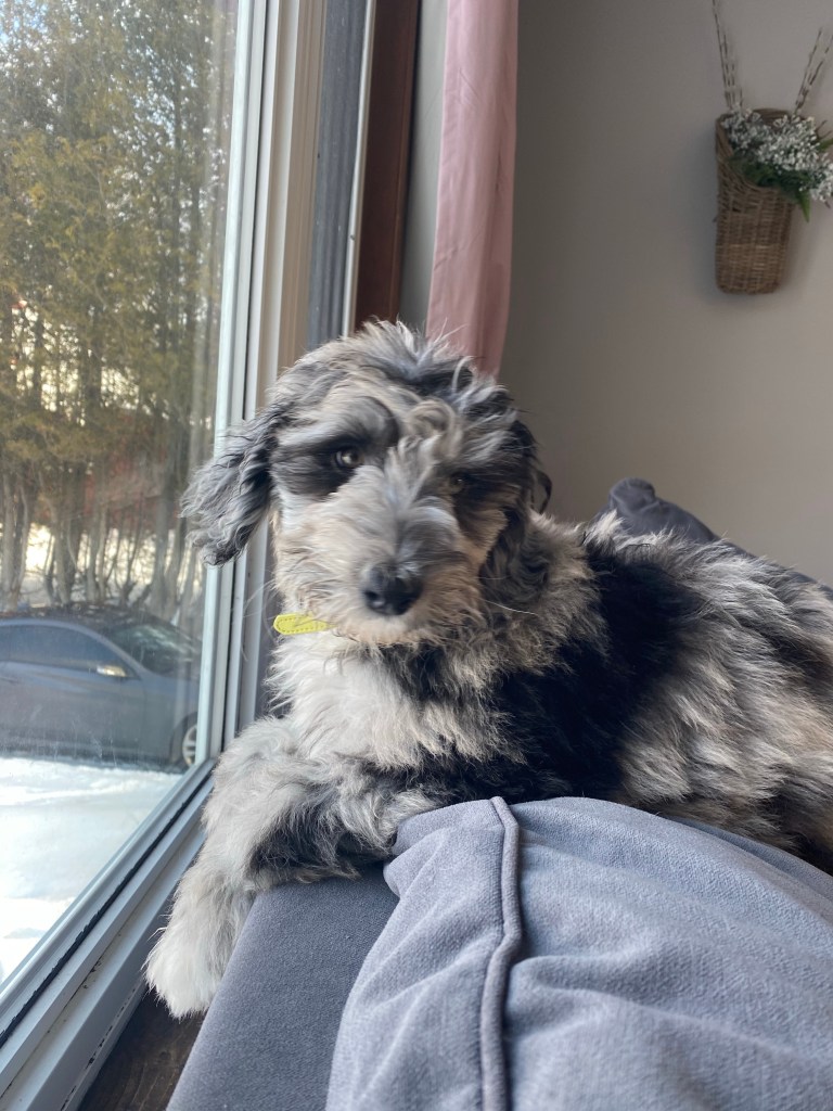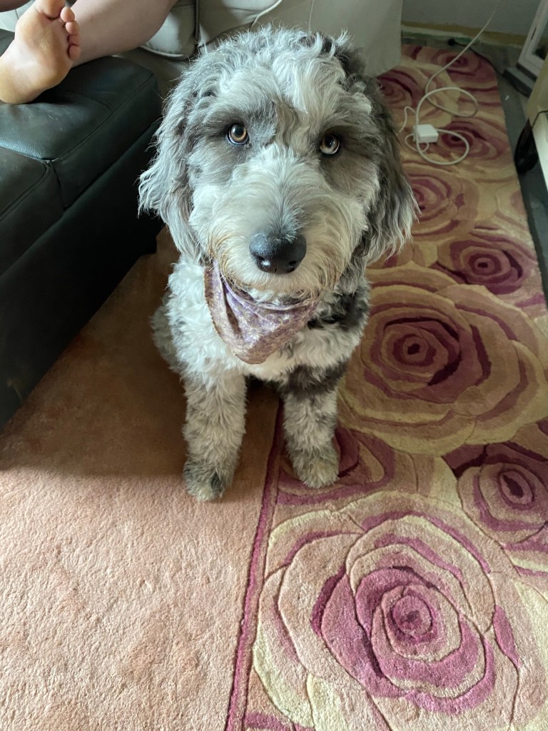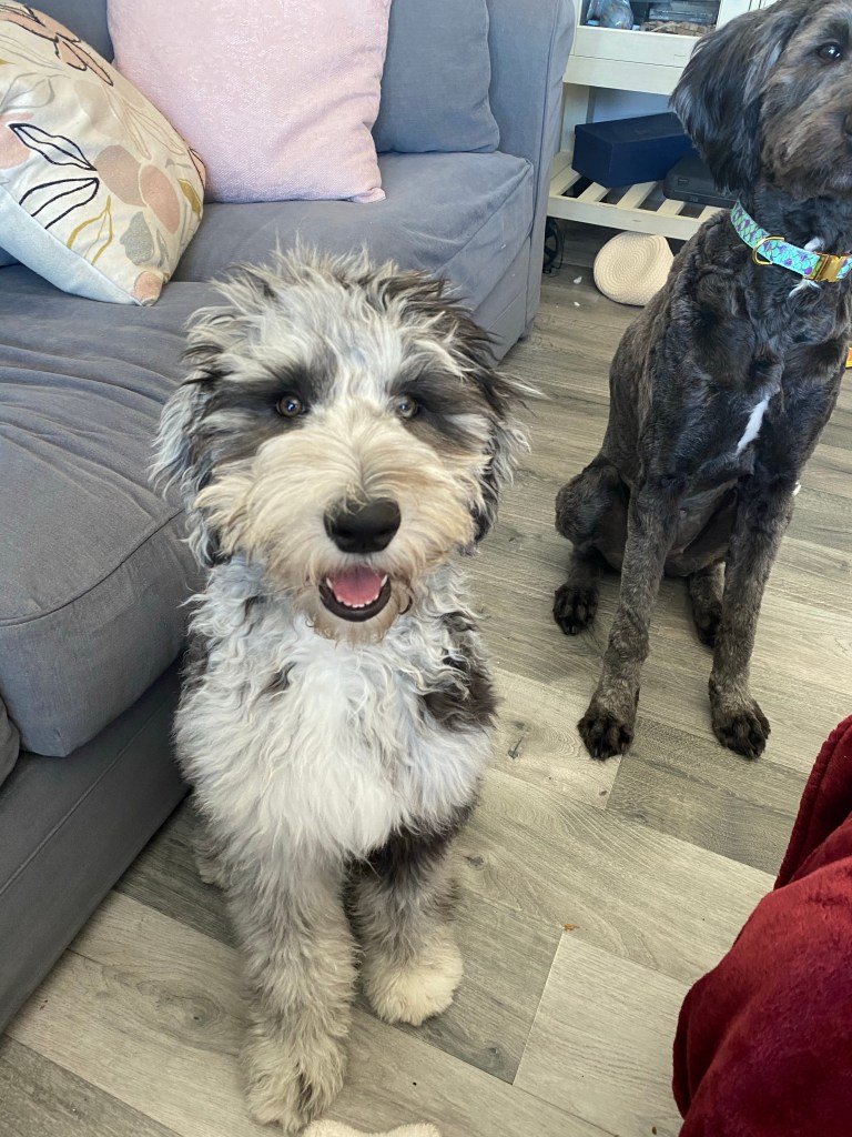 Charlotte is 49 lbs and one of our F1 sheepadoodles.